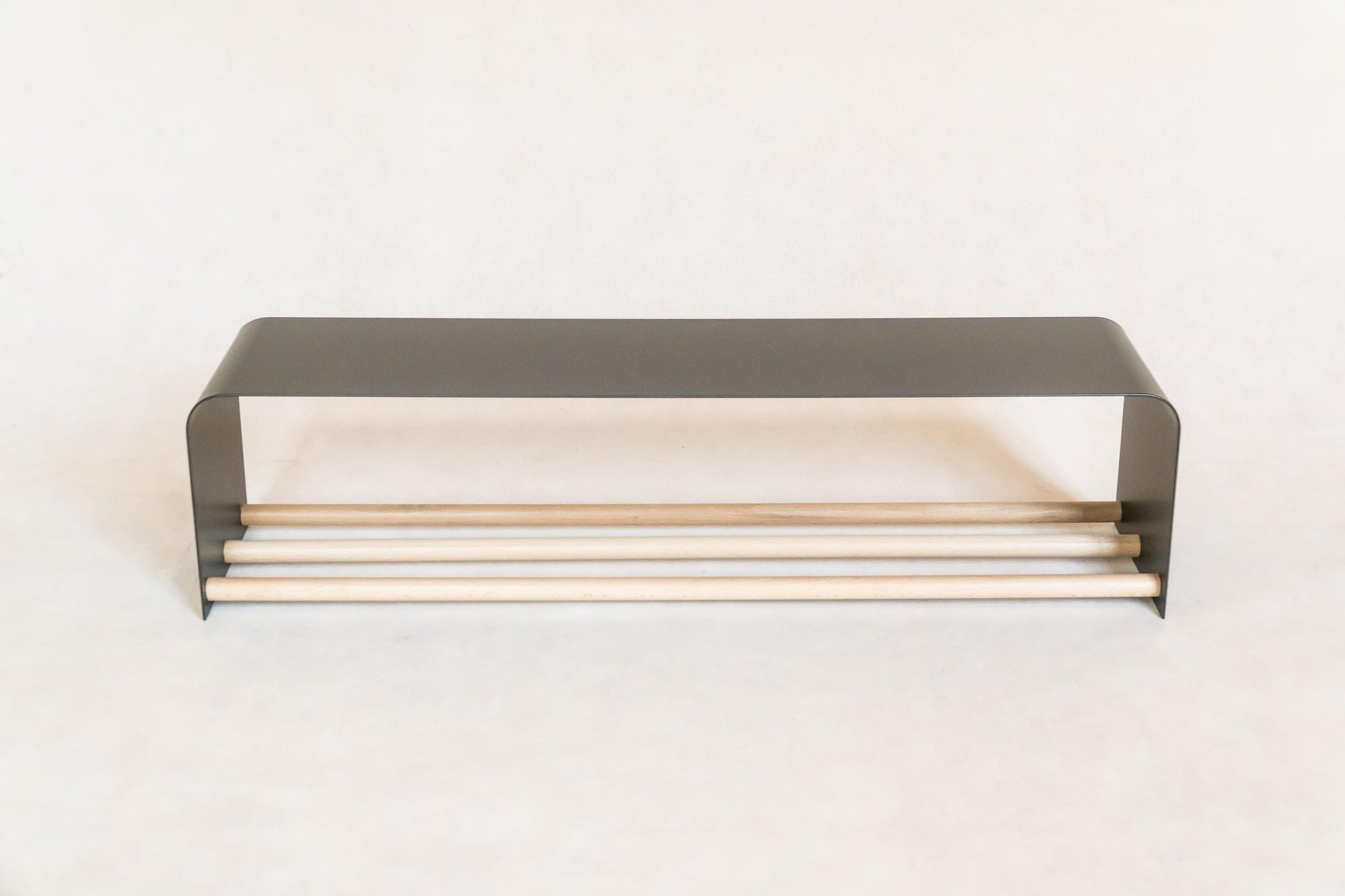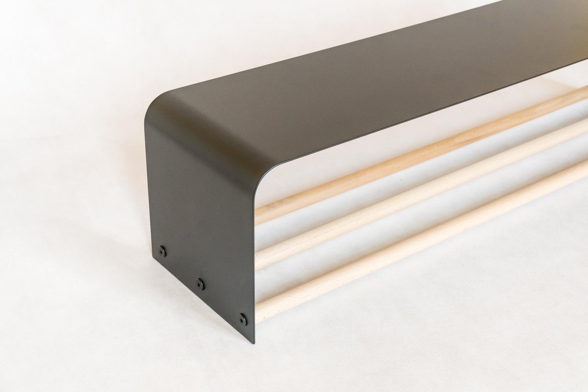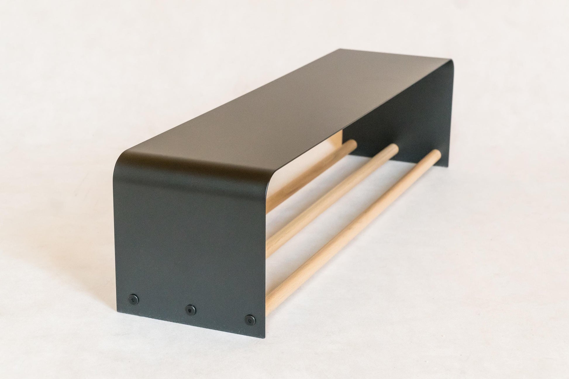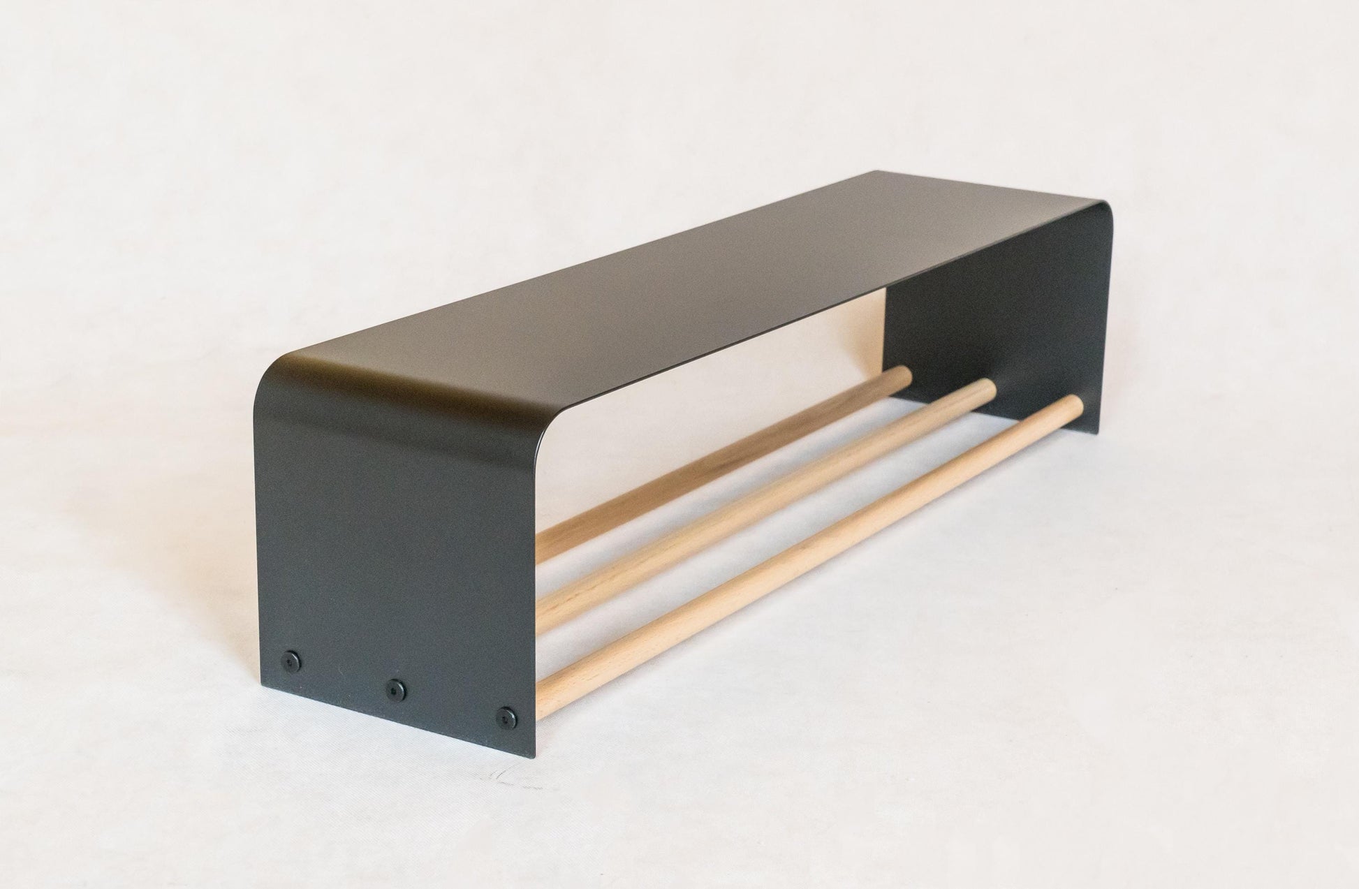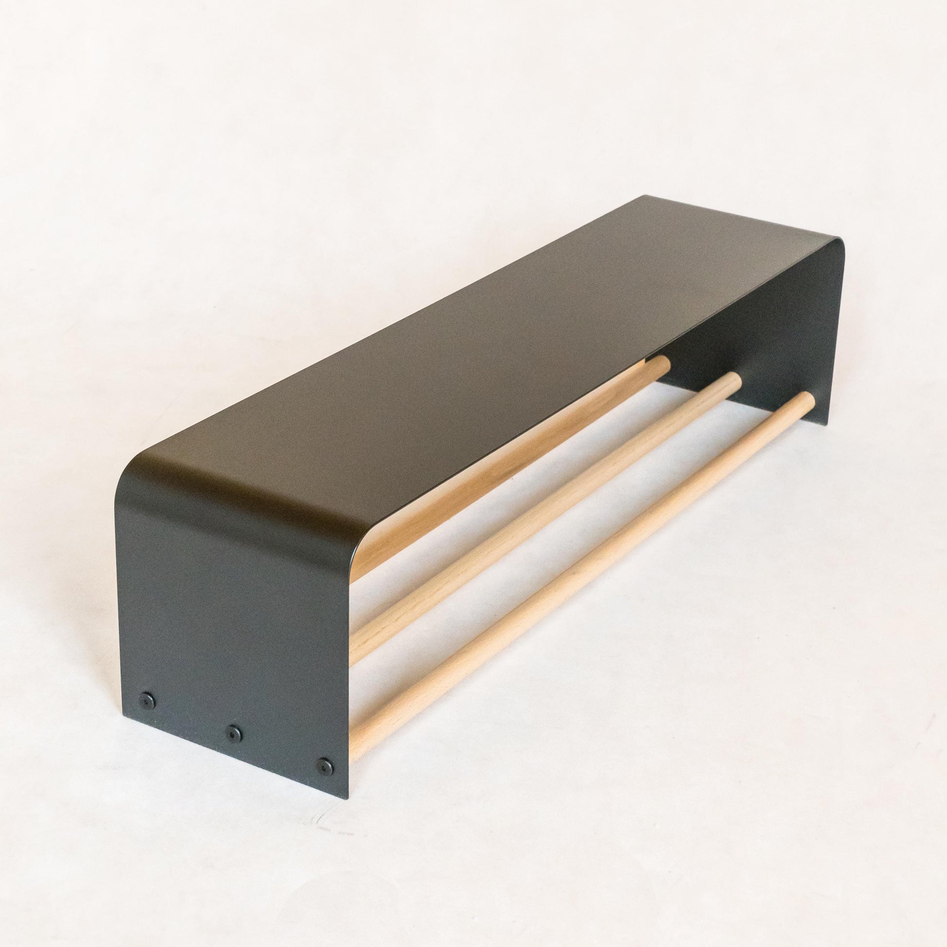 Zadbaj o porządek dla swoich butów i dodaj odrobinę nowoczesnego stylu dzięki tej eleganckiej metalowej półce na buty, wykonanej z metalu i drewna. Zaprojektowana z myślą o przechowywaniu 6–10 par butów, posiada dwie wytrzymałe i wodoodporne półki. Metalowa półka pokryta jest gładką powłoką proszkową, natomiast drewniana została pokryta twardym olejowoskiem, który zapewnia długotrwałą ochronę. Dzięki industrialnemu, a jednocześnie niepowtarzalnemu wyglądowi, półka ta doskonale pasuje do każdego przedpokoju.